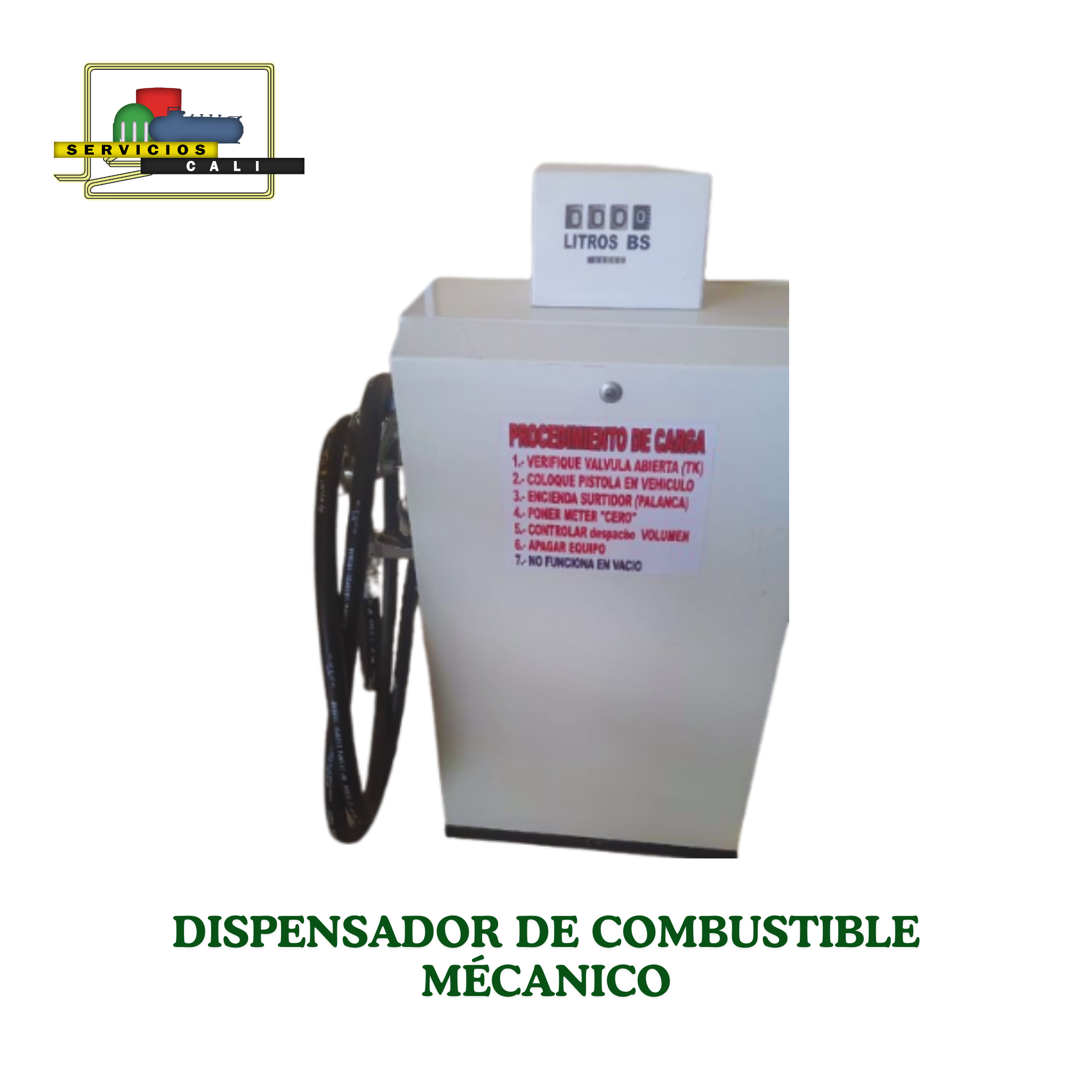 Equipo de suministro manual con contador mecánico de alta precisión, diseñado para despachar gasolina o diésel en aplicaciones industriales.