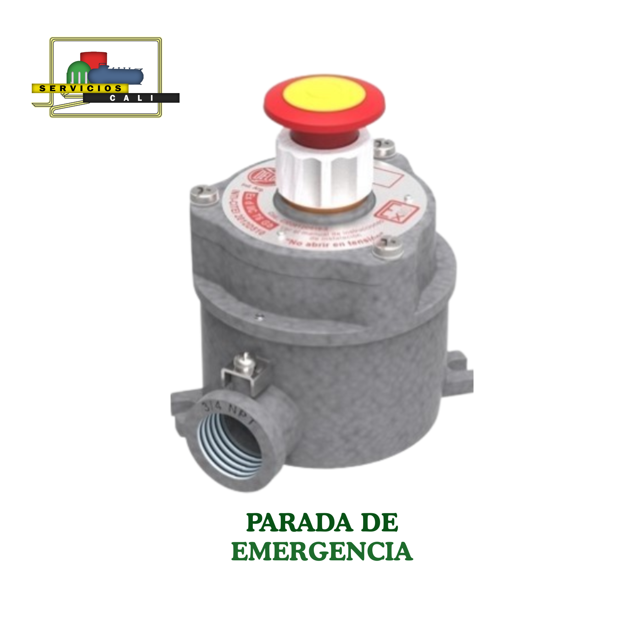 Botón de seguridad diseñado para detener equipos de forma inmediata en entornos con riesgo de explosión.