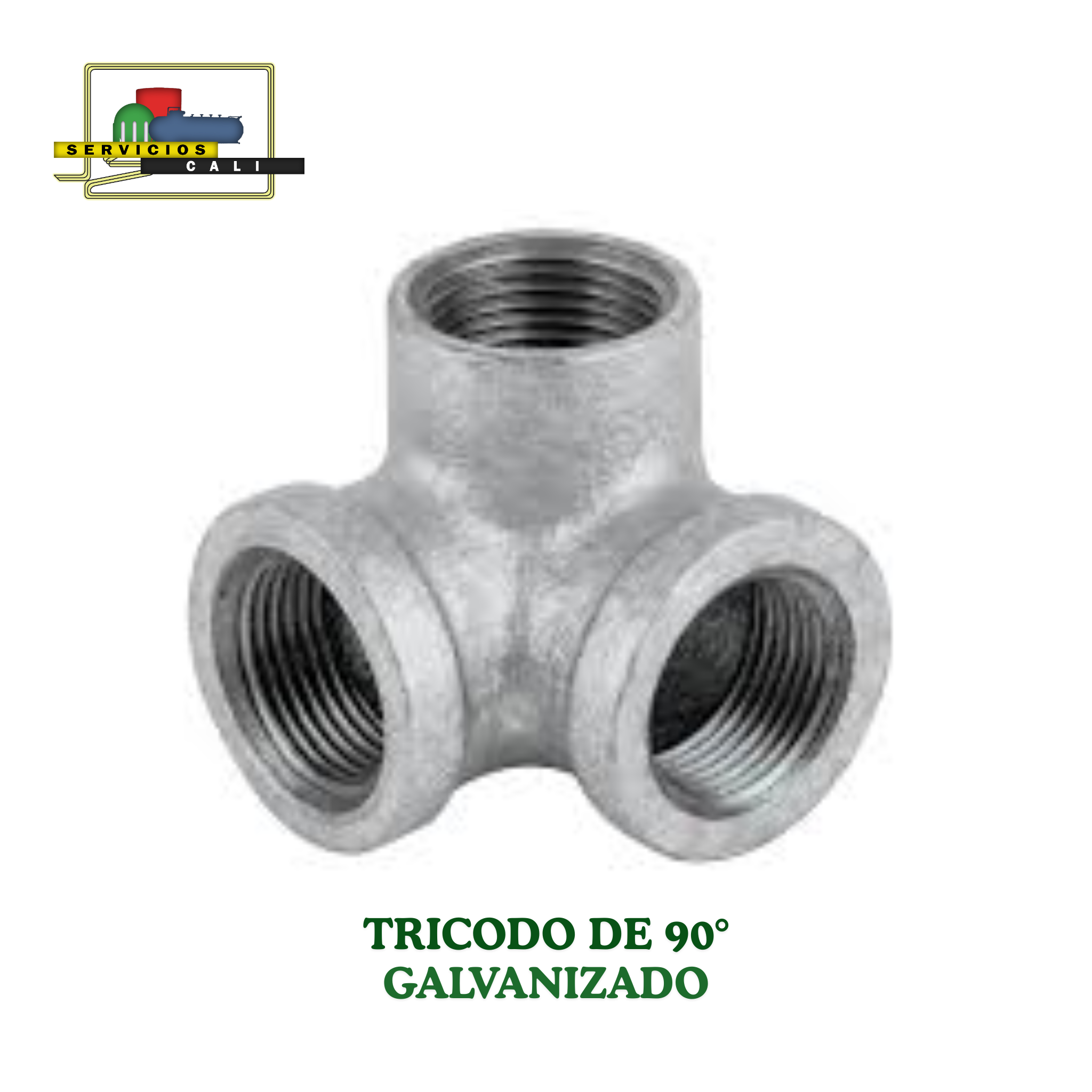 El tricodo de 90 grados galvanizado es un accesorio de conexión diseñado para unir tres tramos de tubería y cambiar la dirección del flujo en 90°, permitiendo la distribución del fluido en forma de “T” con una salida en ángulo recto.